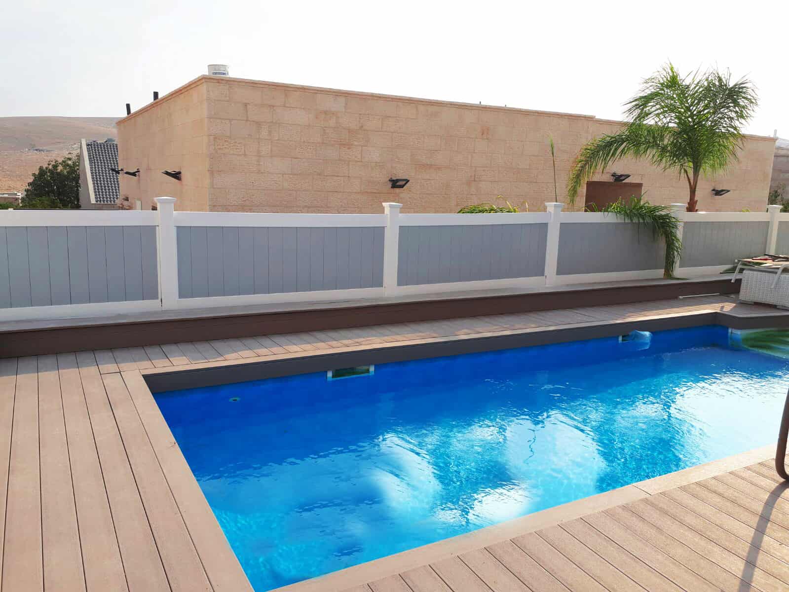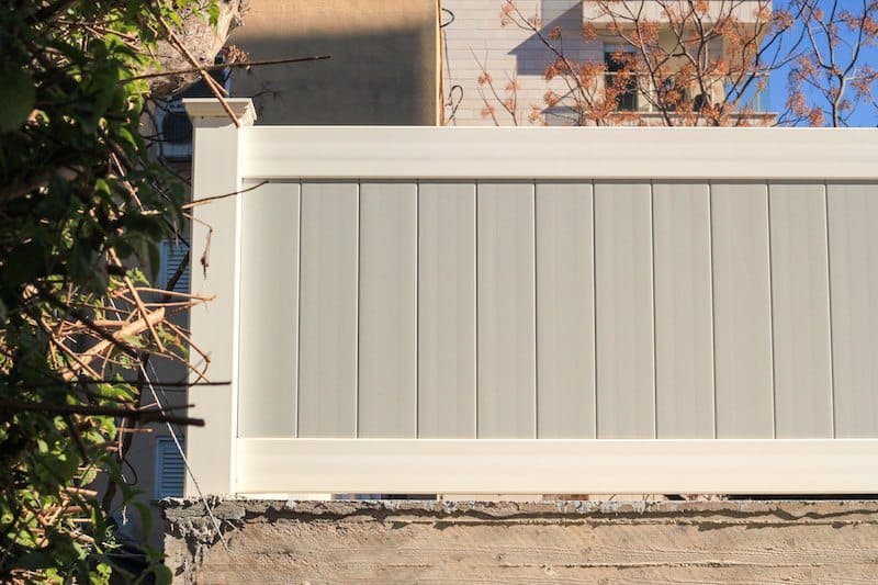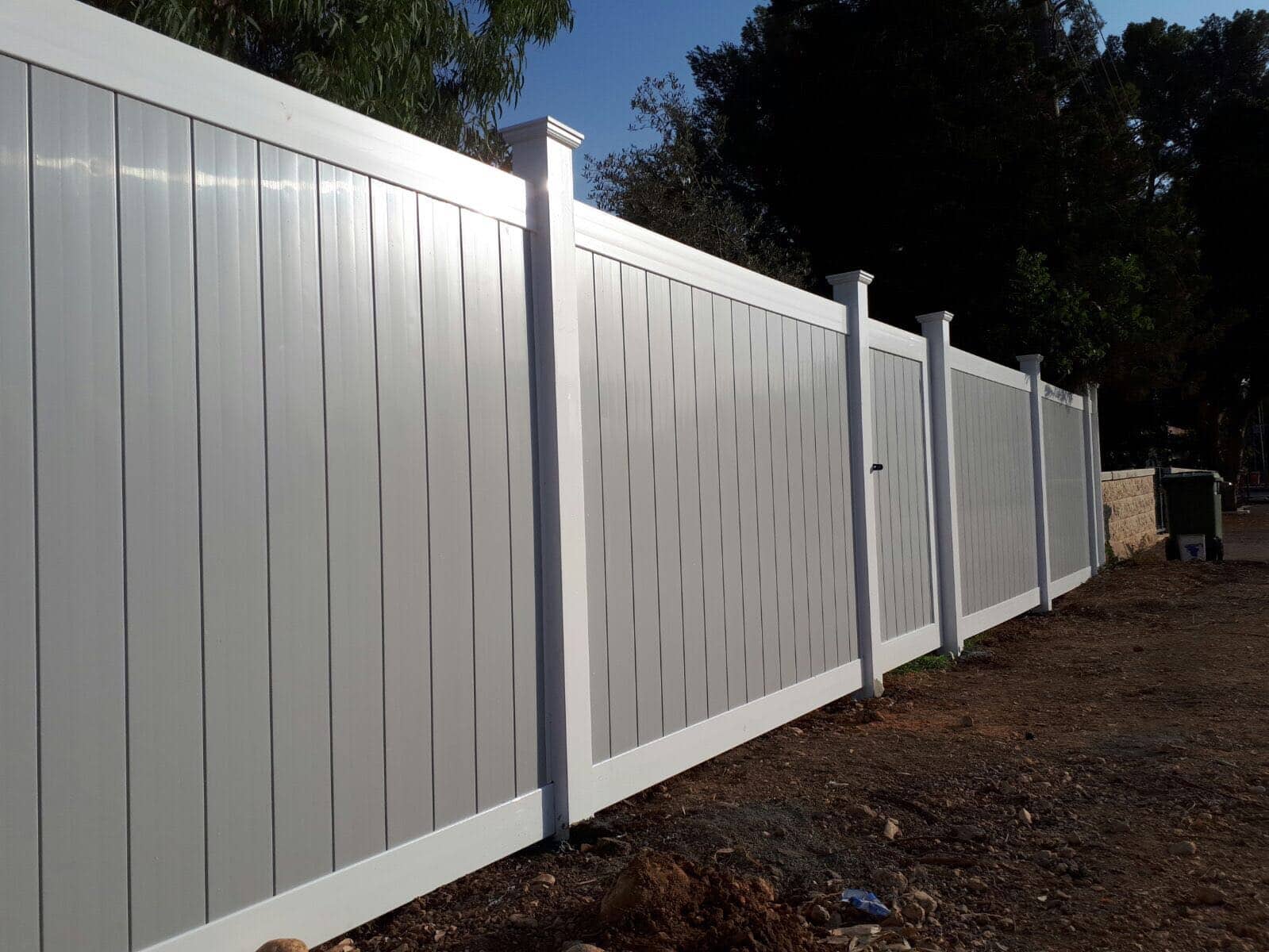 גדר ויניל מעוצבת, בצבע לבן. גדר קלה ואטומה למים ולכלוך שיזיקו לחומר.