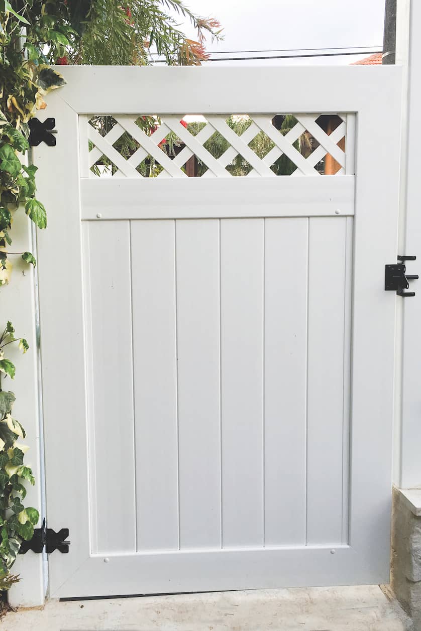 שער לגינה עשוי PVC. תוכנן ועוצב בצורה מודרנית שתתאים לכל סוג חצר. מגיע מוכן להרכבה.